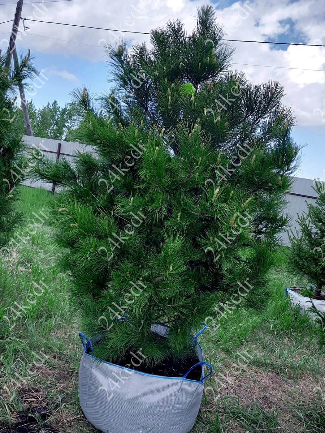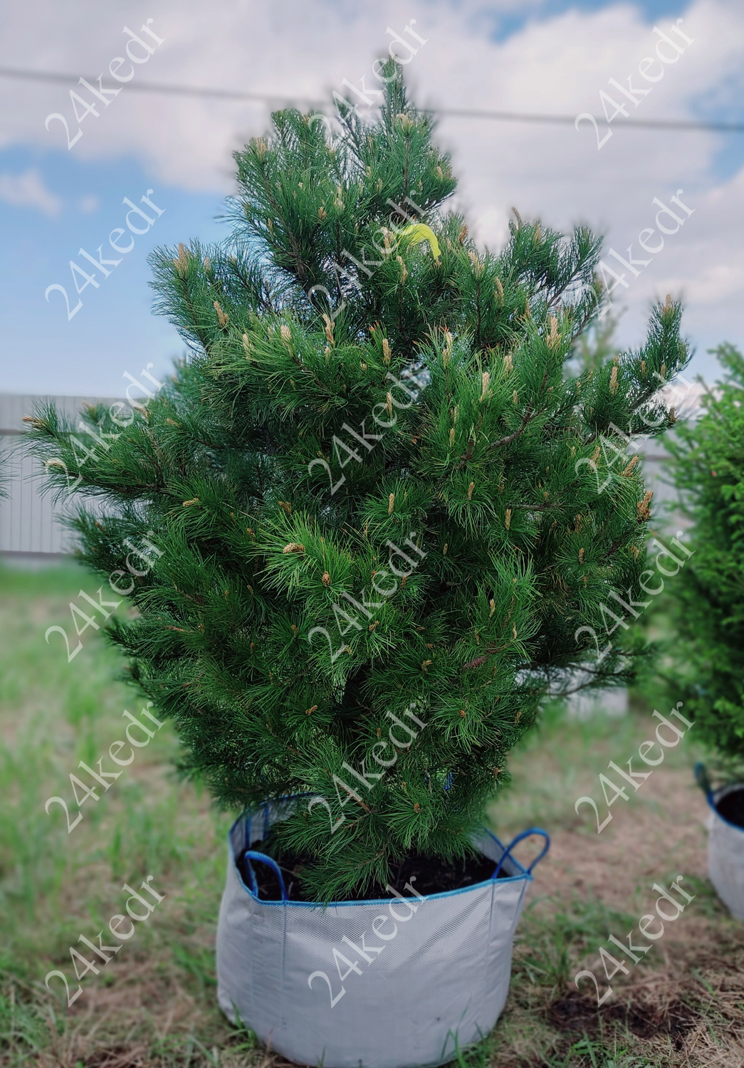 Нарощеная, пышная крона и формированная коневая система, большой и добротный ком размером 60 см * 30 см., упакован в органическое полотно и надежно затянут в металлическую сетку ВЫГОДНОЕ ПРЕИМУЩЕСТВО: В условиях жесткого сибирского климата побеги растут медленее, меньше вытягиваются за сезон, поэтому плотно опушаются и наращивают густую хвою, которая нередко имеет голубой отлив, благодаря особому воску на хвое. Поэтому наши растения выглядят объемнее, пушистее и декоративнее. Их не сравнить с кедром, выращенным на западе, где в условиях мягкого климата и стимуляции химией ветки сильно тянутся в рост, хвоя на них расположена реже и формируется ажурные, разреженные кроны. + РУЧНОЕ ФОРМИРОВАНИЕ КРОНЫ И КОРНЕВОЙ СИСТЕМЫ