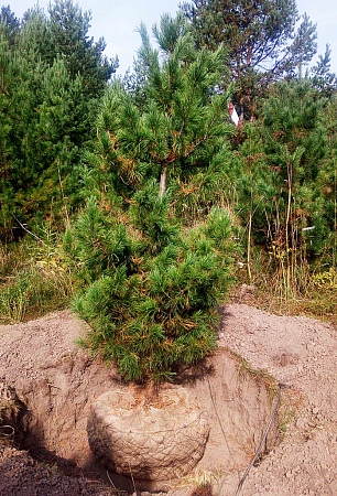 Спецификация: деревья сибирского кедра (Pinus sibirica) 3 м. от шейки корня, 14-16 лет, диаметр кроны 1,0-1,5, диаметр корневого кома - 90-110 см. Ровный ствол, целая верхушечная и боковые почки, зеленая хвоя без признаков угнетения. Крона яйцевидной формы, без провалов, доминирующий центральный побег, высота штамба (вертикальная надземная часть ствола дерева от поверхности почвы до первого разветвления) - 0,3-0,5 м.